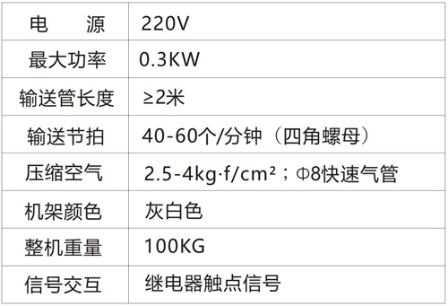 1、采用滑杆式输送,准确度高,速度快,无需退磁,无需吹气,可靠性强。 2、采用振动盘筛选的分拣模式,速度快,效率高。多年的输送机制作经验,保证了筛选的可靠性。 3、可编程控制器(PLC)控制方式,稳定可靠。能根据现场情况调整参数、维护方便。 4、气动元件采用亚德客(Airtac)品牌,可靠、经济。 5、输送杆采用优质SUS304材质,更耐磨,成本更低。